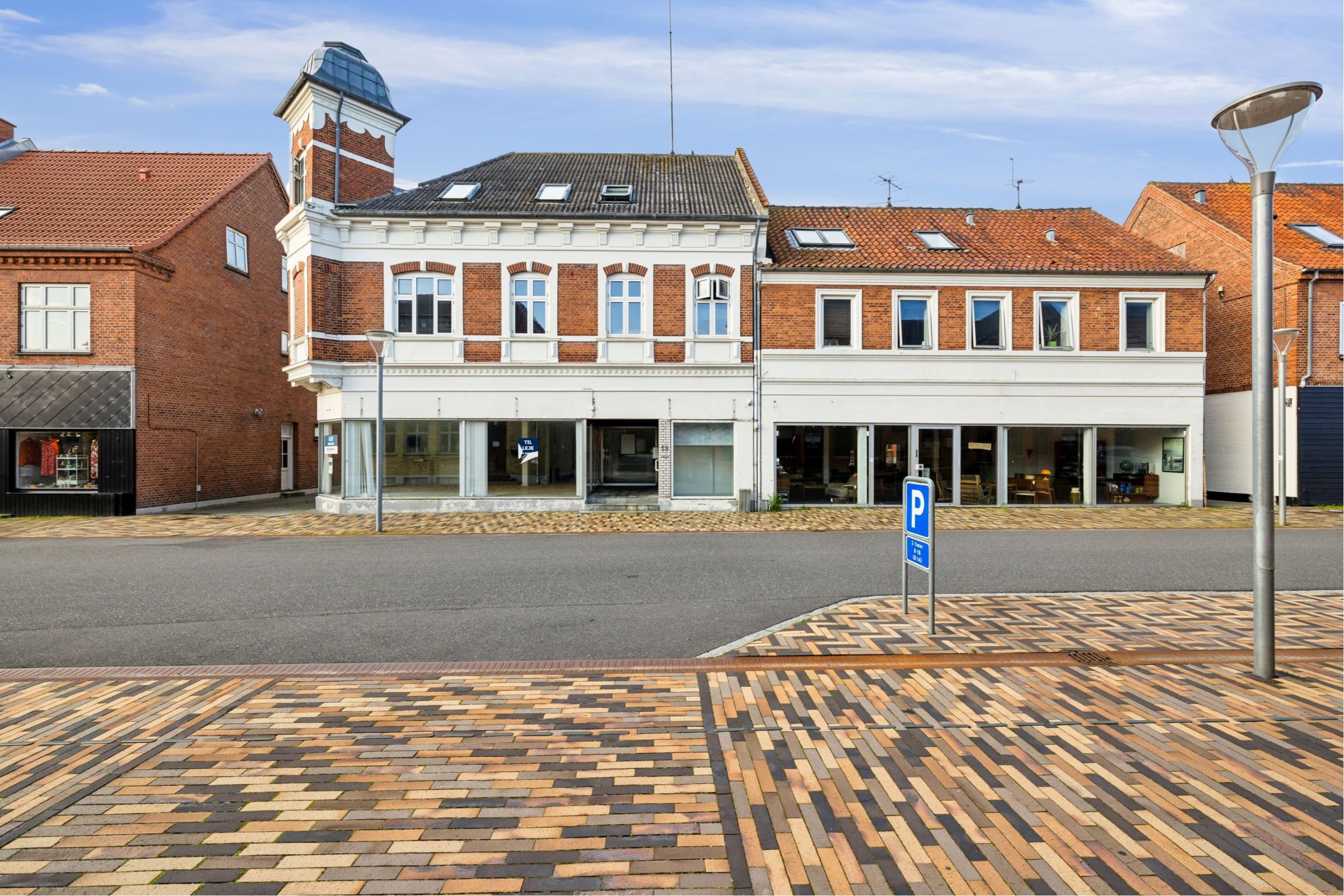 Vestergade 13 er en centralt beliggende ejendom i Aalestrup med en kombination af bolig, erhverv og garager. Ejendommen består af i alt to beboelseslejemål, to erhvervslejemål samt fire garager, der kan lejes separat.